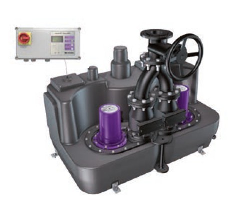 Подъемная станция с двумя насосами SPF для фекальных или беcфекальных сточных вод для свободно стоящей установки в промерзающих помещениях.