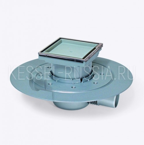С извлекаемым сифоном, прижимным фланцем с сетчатым полотном для тонкослойной гидроизоляции.