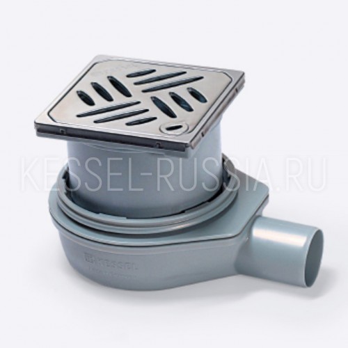 С декоративной решеткой Kessel 120 х 120 мм и кромкой из нержавеющей стали AISI 304, с системой Lock & Lift, класс нагрузки L 15 (способный выдержать нагрузку до 300 кг.)