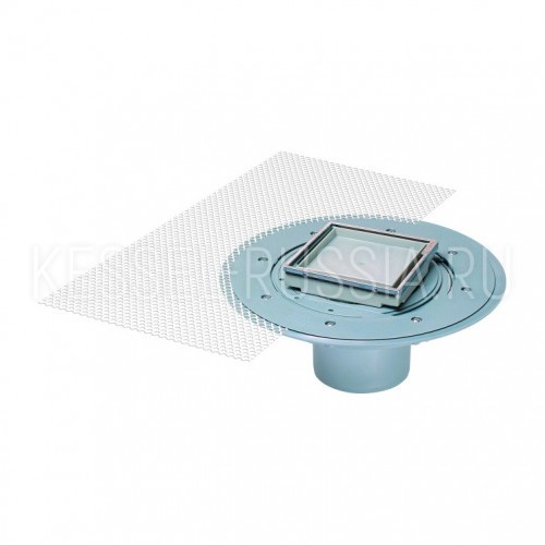 Насадка Variofix с фланцем и контр-фланцем из АБС, включая сетчатое полотно, с углубленной полимерной крышкой для покрытия плиткой 110 мм и кромкой из нержавеющей стали AISI 304 класс нагрузки К 3, с запирающей системой.