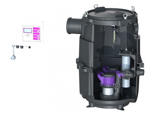 Comfort с многоязычным (английский, немецкий, французский, итальянский, польский, нидерландский) цифровым дисплеем для отображения рабочего состояния, настроек и журнала учёта; блок управления с защитой от брызг (IP 54), для настенного монтажа, рабочее напряжение 230 В пост. тока, с сухим контактом (BMS). Напорное соединение: наружная резьба 1 1/2 дюймов или напорная труба Ø 40 мм ПВХ под клеевое соединение.