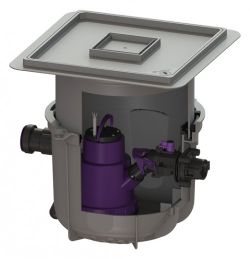 Подъёмная станция Minilift S для установки в бетонную плиту/пол. С крышкой чёрного цвета.
