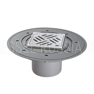 Насадка из АБС с прижимным фланцем и гидроизоляционным полотном с декоративной решеткой Kessel и рамкой из нержавеющей стали AISI 304.