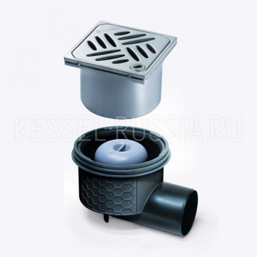 Насадка из АБС с декоративной решеткой Kessel 120 х 120 мм и рамкой из нержавеющей AISI 304, класс L 15 система Loock & Lift.