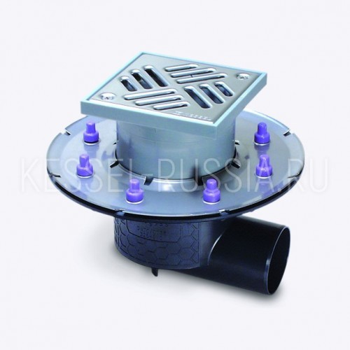 С решеткой с прорезями 138 х 138 мм и рамкой из нержавеющей стали AISI 304, класс L 15 резьбовое соединение.
