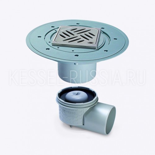 Насадка из АБС с декоративной решеткой Kessel 120 х 120 мм и рамкой из нержавеющей стали AISI 304, класс L 15 система Loock & Lift.