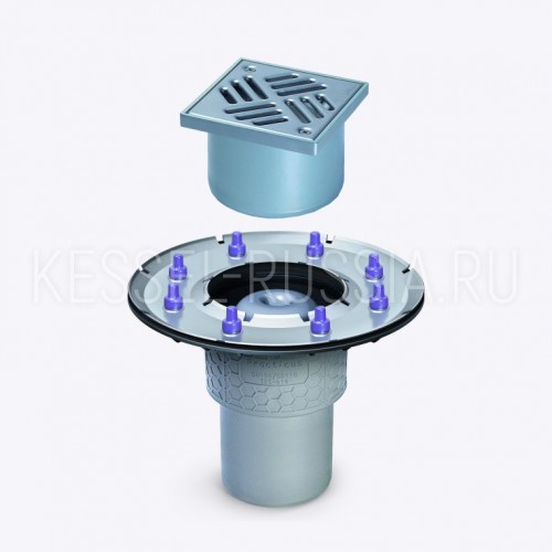 Насадка из АБС с решеткой с прорезями 138 х 138 мм и рамкой из нержавеющей стали AISI 304, класс L 15 резьбовое соединение.