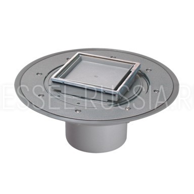Насадка из АБС с прижимным фланцем и гидроизоляционным полотном, с крышкой из полимера для покрытия плиткой и рамкой.