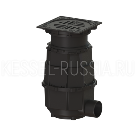 Дворовой трап Система 400 из полиэтилена, класс B, Ø 110, горизонтальный отвод 2.5°, с шламоуловителем и сифоном.