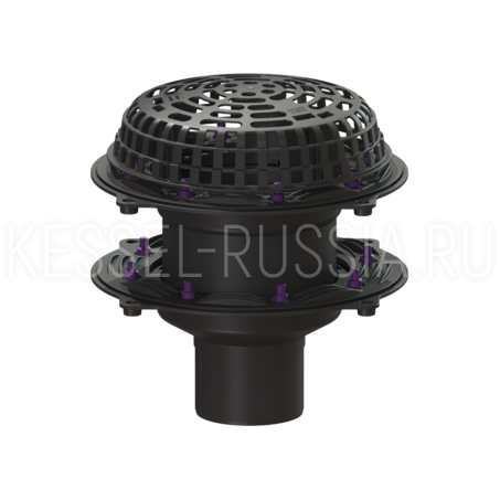 Кровельная воронка из Ecoguss, вертикальный отвод, Ø110, с одним уплотнением для установки в водонепроницаемом бетоне насадка из Ecoguss Ø 200 с уплотнительным пресс-фланцем из Ecoguss и контр-фланцем.