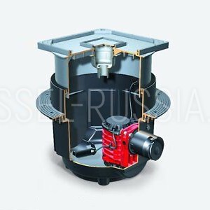 Самостоятельно активируемый насос откачивает сточные воды в случае обратного подпора. С телескопическим надставным элементом для свободного юстирования высоты и уровня с углубленной крышкой для покрытия плиткой, класс нагрузки А 15, из полимера.